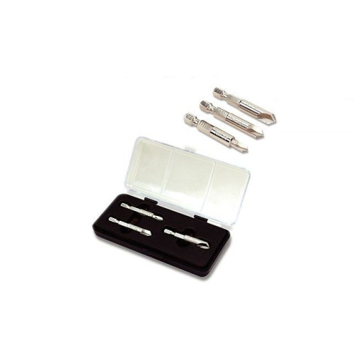 Набор бит для поврежденных шурупов 3 штуки TOPTUL (JGAW0301) удаляет шурупы и винты с поврежденным шлицем Philips, Slotted, Star, Square и т.д. Биты из специальной закаленной стали для надежной фиксации на поврежденных крепежных изделиях. Хвостовик шестигранный 14 подходит для дрели, головок и отверток. Материал: сталь SUJ2.