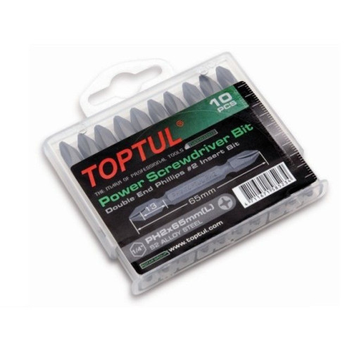 Набор бит двухсторонних PH2х65 10шт. в пластм.боксе TOPTUL