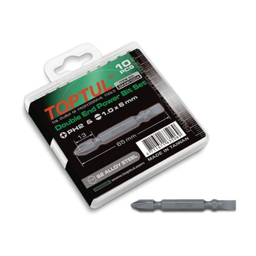 Набор бит двухсторонних PH2хSL6 L65мм 10шт. в пластм.боксе TOPTUL