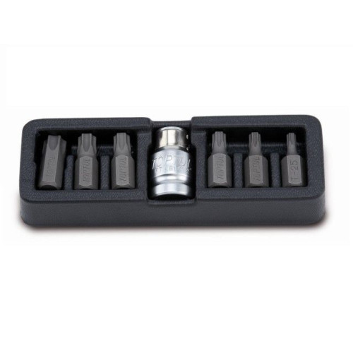 Набор бит Toptul Torx 12 из 7 предметов, содержащий ассортимент бит для выполнения наиболее распространенных операций заворачивания и отворачивания.