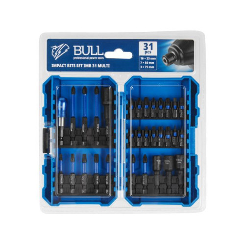 Набор ударных бит BULL Impact IMB 31 предназначен как для тяжелых нагрузок при работе ударными винтовертами и шуруповертами, так и для стандартных работ с крепежом разного вида.