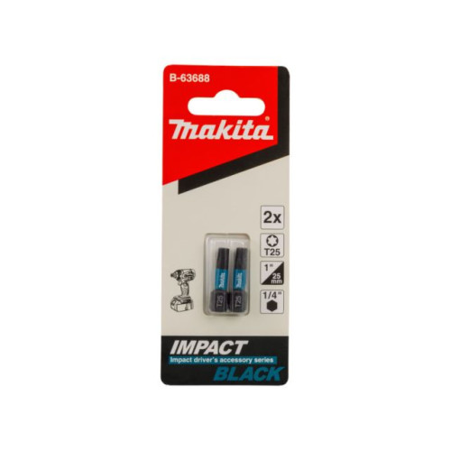 Насадка Impact Black T25 (2 шт) 25 мм, C-form Makita B-63688 подходит для использования с ударными и обычными инструментами благодаря возможности выдерживать более высокие нагрузки. Улучшенная формула сплава и антикоррозийное покрытие позволяют увеличить срок службы данных бит.