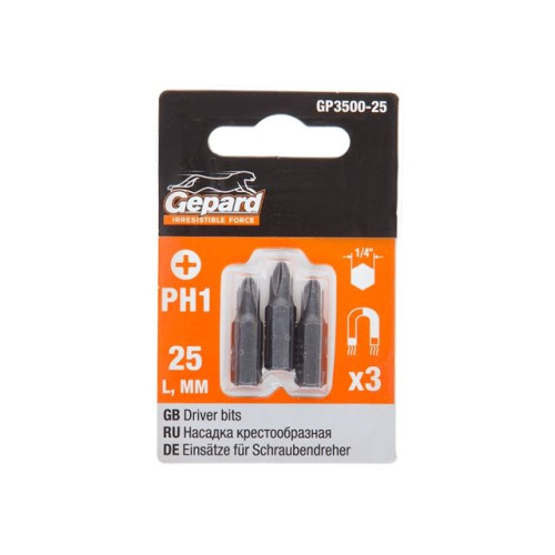 Насадка крестообразная PH1 25мм 3шт GEPARD (GP3500-25)