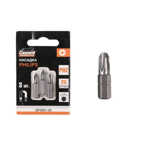 Насадка крестообразная PH2 25мм 3шт GEPARD (GP3501-25)