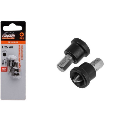 Насадка крестообразная PH2 25мм с ограничителем 2шт. GEPARD (GP3516-25)