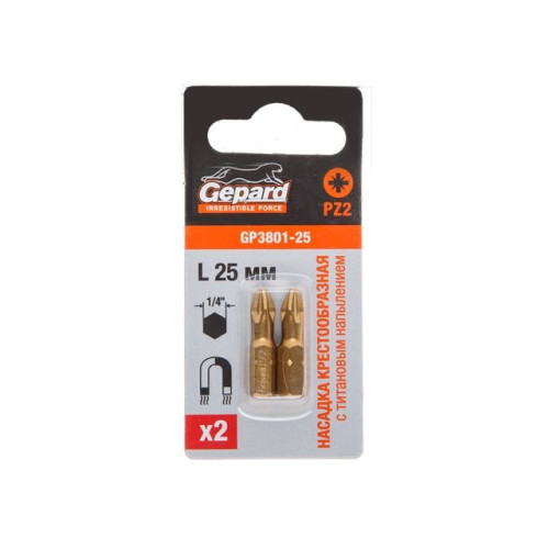 Насадка крестообразная PZ2 25мм 2шт с титановым напылением GEPARD (GP3801-25)
