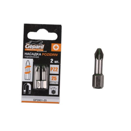 Насадка крестообразная PZ2 25мм 2шт торсионная GEPARD (GP3901-25)