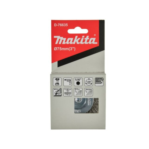 Щетка дисковая проволочная (75 мм / проволка 0,3 мм / хв 1/4" HEX) по нержавейке MAKITA