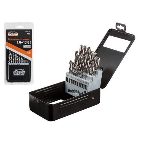 Набор сверл по мет. 25шт 1-13мм HSS GEPARD