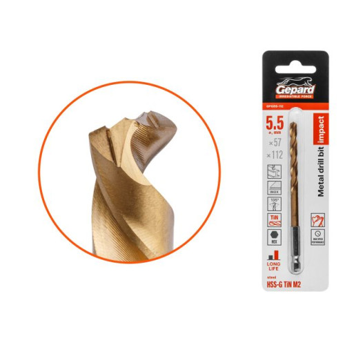 Сверло по металлу шестигр. 5.5х57х112 мм HSS-G TIN GEPARD