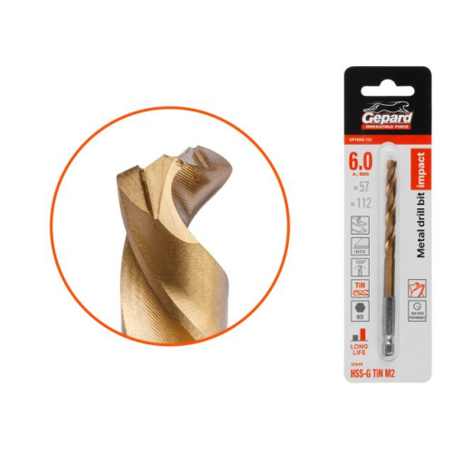 Сверло по металлу шестигр. 6.0х57х112 мм HSS-G TIN GEPARD