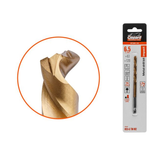 Сверло по металлу шестигр. 6.5х63х120 мм HSS-G TIN GEPARD