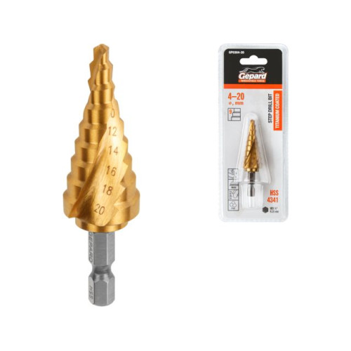 Сверло по металлу ступенчатое 4-20 мм HSS TIN GEPARD