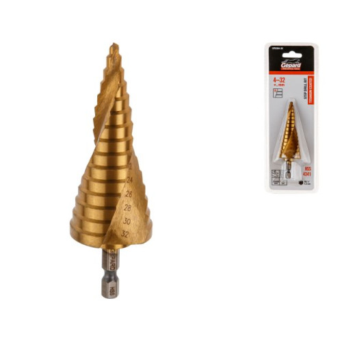 Сверло по металлу ступенчатое 4-32 мм HSS TIN GEPARD