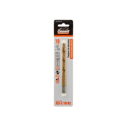 Сверло по металлу ц/х 10.0х87х133 мм HSS TIN GEPARD