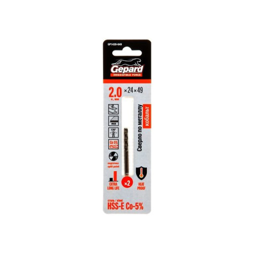 Сверло по металлу ц/х 2.0х24х49 мм HSS-Co, комплект из 2-х шт GEPARD