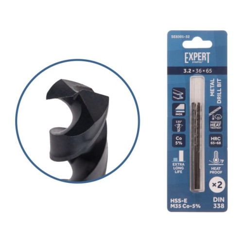 Сверло по металлу ц/х 3.2х36х65 мм HSS-Co, комплект из 2-х шт Black EXPERT STARTUL