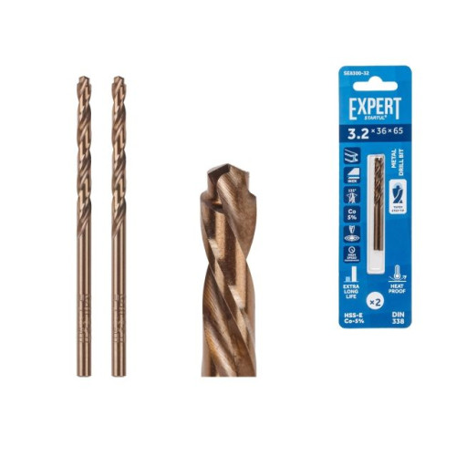 Сверло по металлу ц/х 3.2х36х65 мм HSS-Co, комплект из 2-х шт EXPERT STARTUL