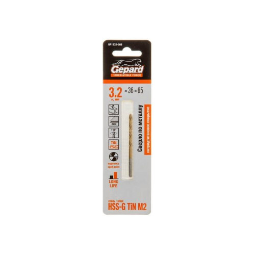 Сверло по металлу ц/х 3.2х36х65 мм HSS TIN GEPARD