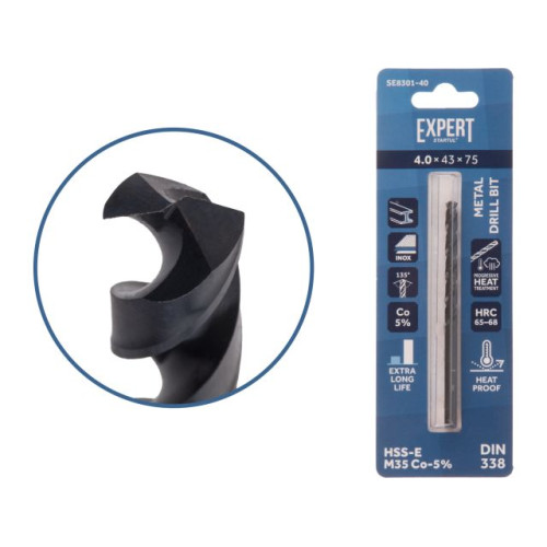 Сверло по металлу ц/х 4.0х43х75 мм HSS-Co Black EXPERT STARTUL