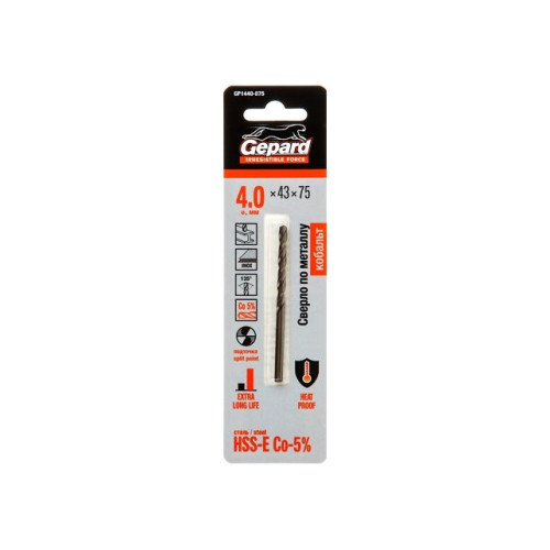 Сверло по металлу ц/х 4.0х43х75 мм HSS-Co GEPARD