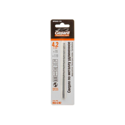 Сверло по металлу ц/х 4.2х78х119 мм удлиненное HSS-G GEPARD