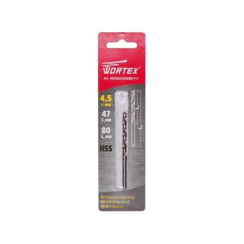Сверло по металлу ц/х 4.5х47х80 мм HSS WORTEX