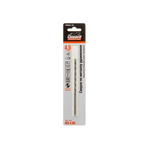 Сверло по металлу ц/х 4.5х82х126 мм удлиненное HSS-G GEPARD