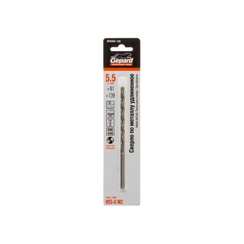Сверло по металлу ц/х 5.5х91х139 мм удлиненное HSS-G GEPARD