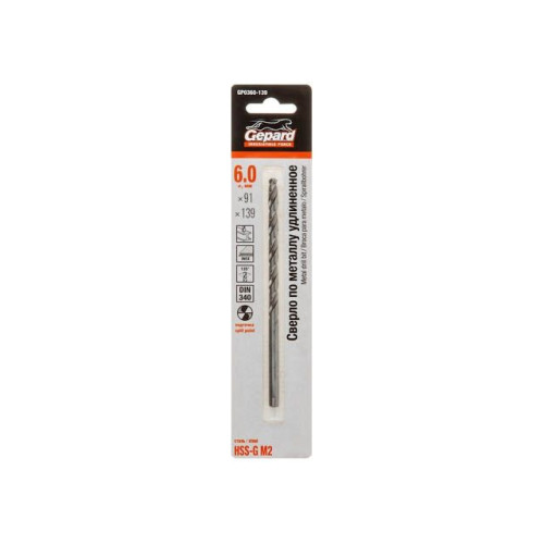 Сверло по металлу ц/х 6.0х91х139 мм удлиненное HSS-G GEPARD