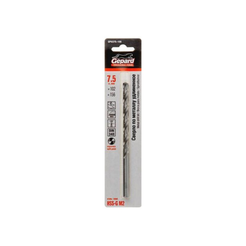 Сверло по металлу ц/х 7.5х102х156 мм удлиненное HSS-G GEPARD