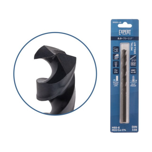 Сверло по металлу ц/х 8.0х75х117 мм HSS-Co Black EXPERT STARTUL