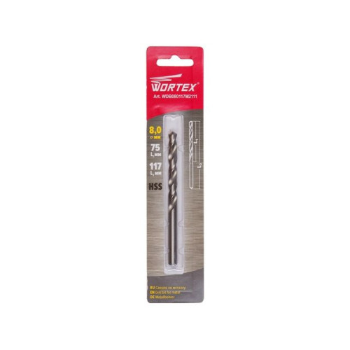 Сверло по металлу ц/х 8.0х75х117 мм HSS WORTEX