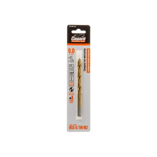 Сверло по металлу ц/х 9.0х81х125 мм HSS TIN GEPARD