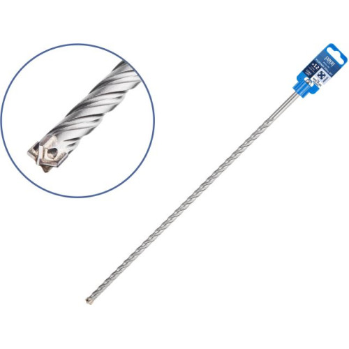 Тип и назначение: бур (сверло) для особо сложных работ при сверлении отверстий в железобетоне, бетоне, кирпичной кладке, камне, граните. Оснащен цельным X-образным твердосплавным наконечником Ceratizit повышенной твердости с четырьмя режущими кромками, который фиксируется особо прочным припоем, рассчитанным на высокие рабочие температуры и значительные ударные нагрузки. Центрирующий наконечник обеспечивает точное засверливание. 4 отдельные канавки быстро и эффективно удаляют шлам и повышают производительность. Тело сверла обладает большей жесткостью, а следовательно меньше подвержено колебаниям в процессе бурения, что улучшает точность просверленного отверстия, снижает износ тела бура и вибрации перфоратора. Подходит для интенсивных нагрузок,