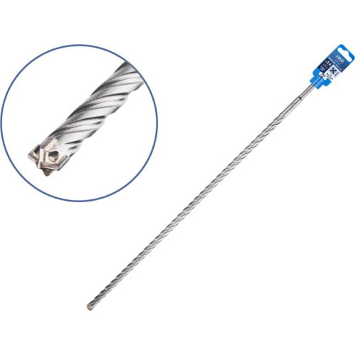 Тип и назначение: бур (сверло) для особо сложных работ при сверлении отверстий в железобетоне, бетоне, кирпичной кладке, камне, граните. Оснащен цельным X-образным твердосплавным наконечником Ceratizit повышенной твердости с четырьмя режущими кромками, который фиксируется особо прочным припоем, рассчитанным на высокие рабочие температуры и значительные ударные нагрузки. Центрирующий наконечник обеспечивает точное засверливание. 4 отдельные канавки быстро и эффективно удаляют шлам и повышают производительность. Тело сверла обладает большей жесткостью, а следовательно меньше подвержено колебаниям в процессе бурения, что улучшает точность просверленного отверстия, снижает износ тела бура и вибрации перфоратора. Подходит для интенсивных нагрузок,
