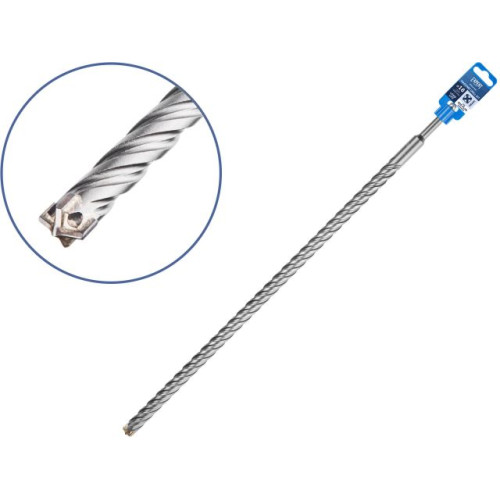 Тип и назначение: бур (сверло) для особо сложных работ при сверлении отверстий в железобетоне, бетоне, кирпичной кладке, камне, граните. Оснащен цельным X-образным твердосплавным наконечником Ceratizit повышенной твердости с четырьмя режущими кромками, который фиксируется особо прочным припоем, рассчитанным на высокие рабочие температуры и значительные ударные нагрузки. Центрирующий наконечник обеспечивает точное засверливание. 4 отдельные канавки быстро и эффективно удаляют шлам и повышают производительность. Тело сверла обладает большей жесткостью, а следовательно меньше подвержено колебаниям в процессе бурения, что улучшает точность просверленного отверстия, снижает износ тела бура и вибрации перфоратора. Подходит для интенсивных нагрузок,
