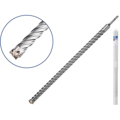 Тип и назначение: бур (сверло) для особо сложных работ при сверлении отверстий в железобетоне, бетоне, кирпичной кладке, камне, граните. Оснащен цельным X-образным твердосплавным наконечником Ceratizit повышенной твердости с четырьмя режущими кромками, который фиксируется особо прочным припоем, рассчитанным на высокие рабочие температуры и значительные ударные нагрузки. Центрирующий наконечник обеспечивает точное засверливание. 4 отдельные канавки быстро и эффективно удаляют шлам и повышают производительность. Тело сверла обладает большей жесткостью, а следовательно меньше подвержено колебаниям в процессе бурения, что улучшает точность просверленного отверстия, снижает износ тела бура и вибрации перфоратора. Подходит для интенсивных нагрузок,