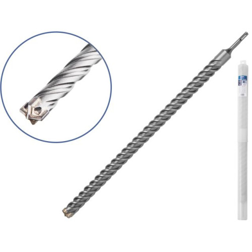 Тип и назначение: бур (сверло) для особо сложных работ при сверлении отверстий в железобетоне, бетоне, кирпичной кладке, камне, граните. Оснащен цельным X-образным твердосплавным наконечником Ceratizit повышенной твердости с четырьмя режущими кромками, который фиксируется особо прочным припоем, рассчитанным на высокие рабочие температуры и значительные ударные нагрузки. Центрирующий наконечник обеспечивает точное засверливание. 4 отдельные канавки быстро и эффективно удаляют шлам и повышают производительность. Тело сверла обладает большей жесткостью, а следовательно меньше подвержено колебаниям в процессе бурения, что улучшает точность просверленного отверстия, снижает износ тела бура и вибрации перфоратора. Подходит для интенсивных нагрузок,