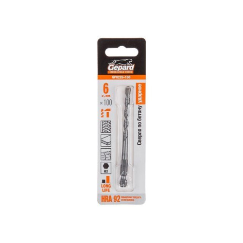 Сверло по бетону 6х100мм шестигр. GEPARD (GP0226-100)
