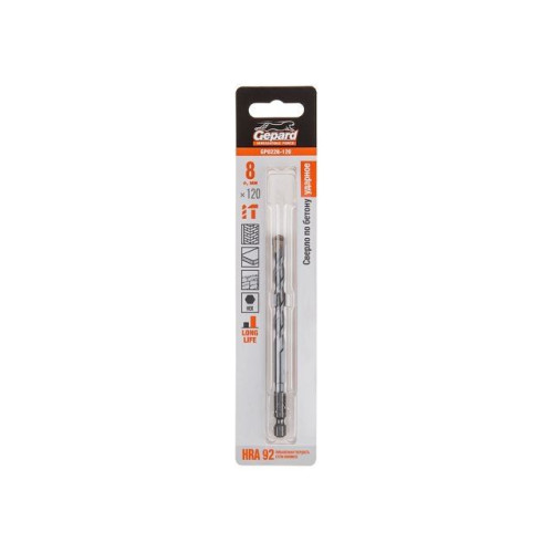 Сверло по бетону 8х120мм шестигр. GEPARD (GP0228-120)