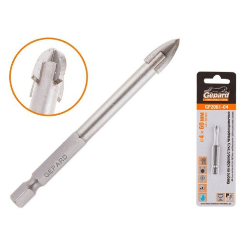 Сверло по кафелю/стеклу 4х60мм четырехкромочное шестигр. GEPARD (GP2081-04)