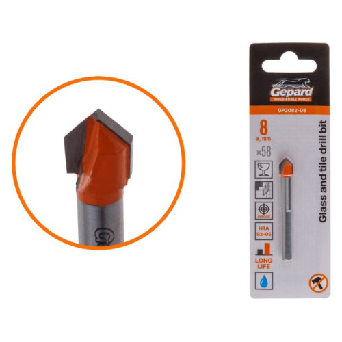 Сверло по кафелю/стеклу 8x58 мм трехгр. хвостовик GEPARD (GP2082-08)