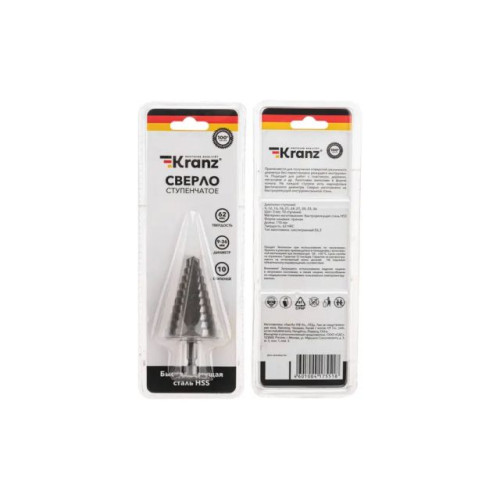 Сверло по металлу ступенчатое 9,0-36,0мм, 110мм, 62 HRC KRANZ