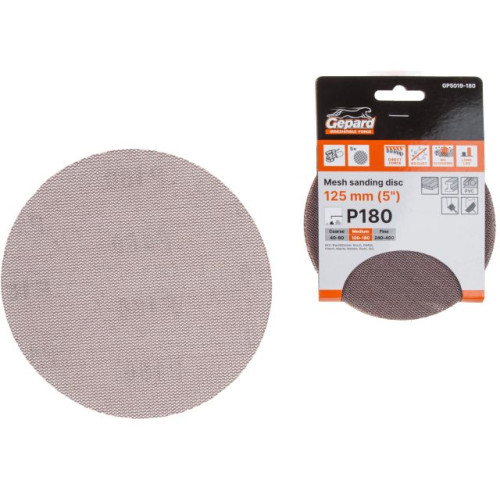 Шлифлист 125мм круг Р180 сетка, самосцепл. 5шт. GEPARD (GP5019-180)