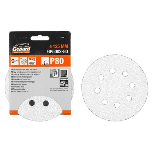 Шлифлист 125мм круг Р240 д/краски 8 отв. 5шт. GEPARD (GP5002-240)