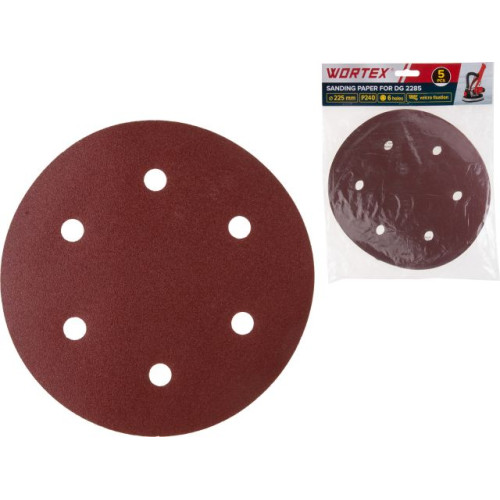 Шлифлист 225 мм Р240 самосцепл. 6 отв. 5 шт. WORTEX для DG 2285