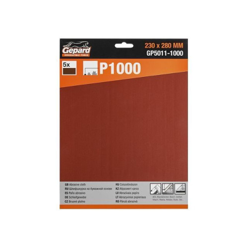 Шлифлист 230х280мм Р1000 бум.осн. 5шт. GEPARD (GP5011-1000)