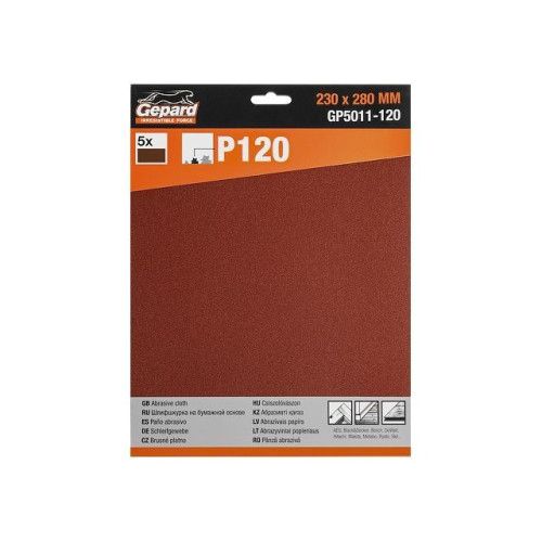Шлифлист 230х280мм Р120 бум.осн. 5шт. GEPARD (GP5011-120)