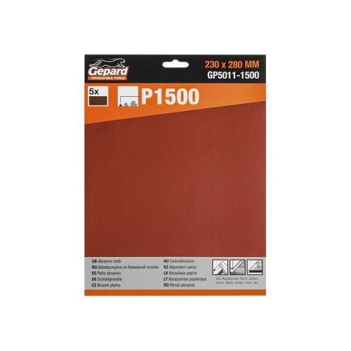 Шлифлист 230х280мм Р1500 бум.осн. 5шт. GEPARD (GP5011-1500)